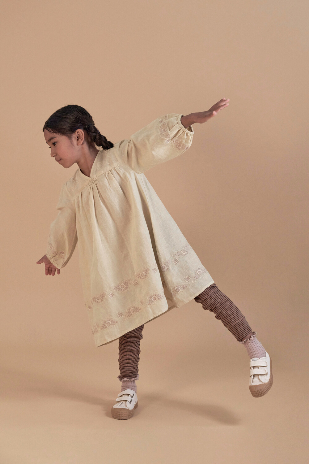 Willow is a bohemian-inspired midi dress cut from beautiful ‘pale pear’ linen. Intricate motif and linear floral embroideries in delicate cream and pink tones, decorate the chest and trim the hem and cuffs, complementing the soft vintage green base. With her gentle tones, volume sleeves and mid-calf length, Willow has an ethereal fairytale mood. Invisible zip closure to back. We love Willow worn over jersey layers.