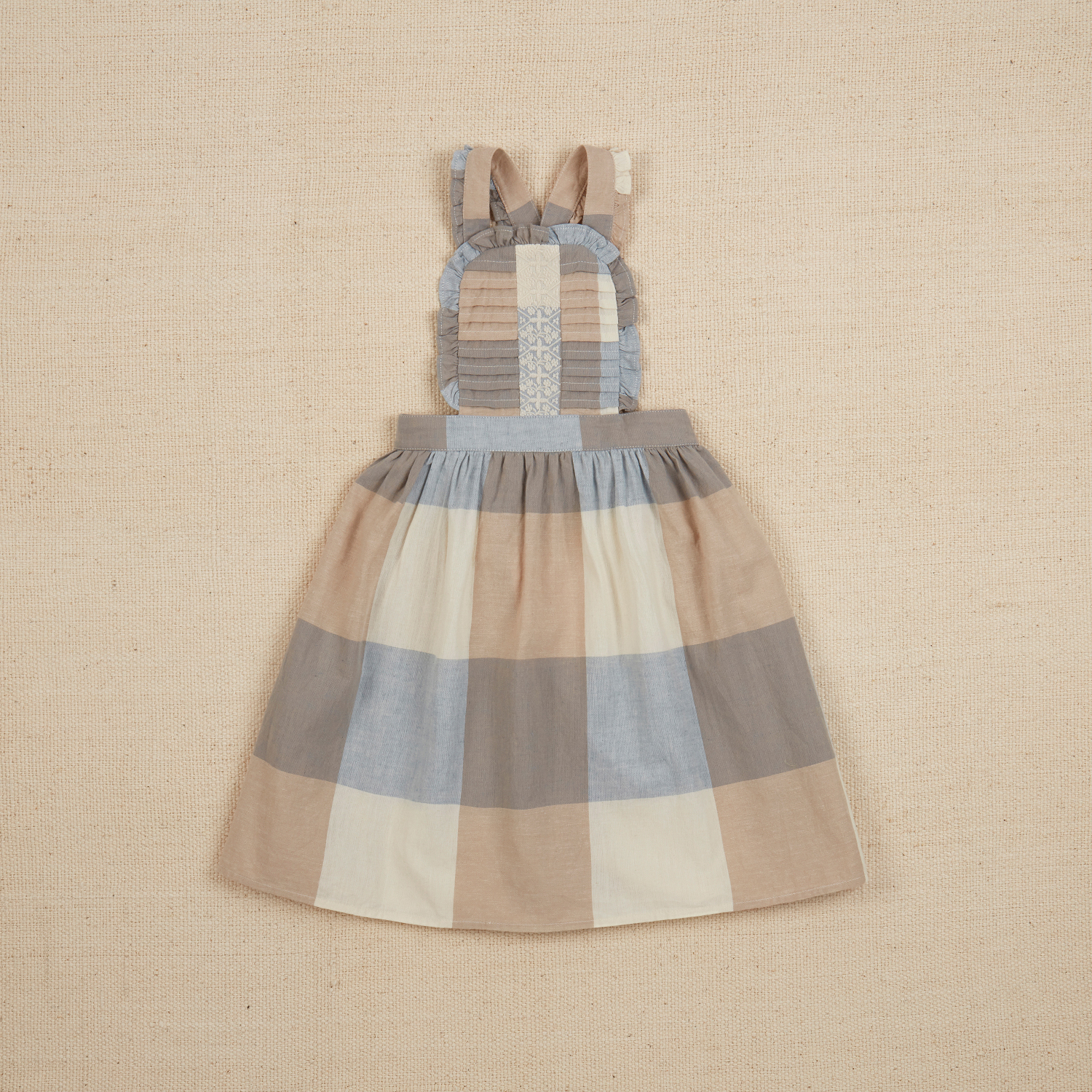 Lena is a favourite Apolina style, a pretty yet practical midi length pini. Cut from our specially woven blanket check in the misty blue, beige and cream tones of the season. Lena’s sweet bib features pleating and a folk-inspired embroidery detail. Featuring elasticated back waist with adjustable button straps. Lena is lovely styled with jersey layers, or mix and match her with our Prudence check blouses.