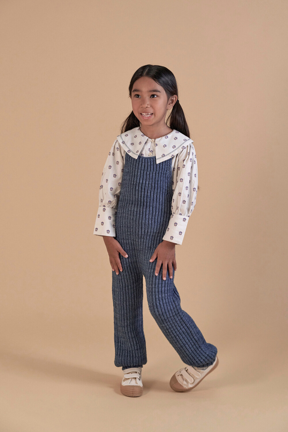 Priscilla is an extra special top cut in our folk-inspired snowdrop calico floral. Her statement collar is finished with cross stitch details, and intricate hand smocking at the waist gathers the fabric releasing to a sweet shape. Priscilla buttons all the way through the front so she can be worn open as a little jacket, or as a blouse. We love Priscilla paired with our Erma skirt and Lena pinafore, or simply layered with jersey.