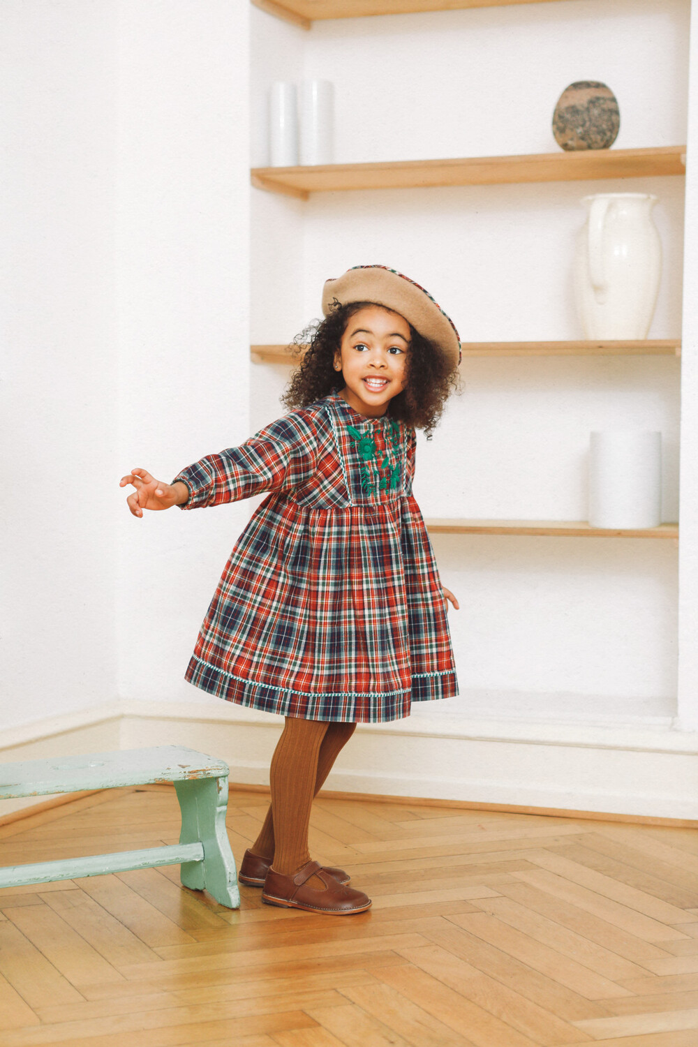 DRESS TILDA_checked hand embroidered_Frou Frou
