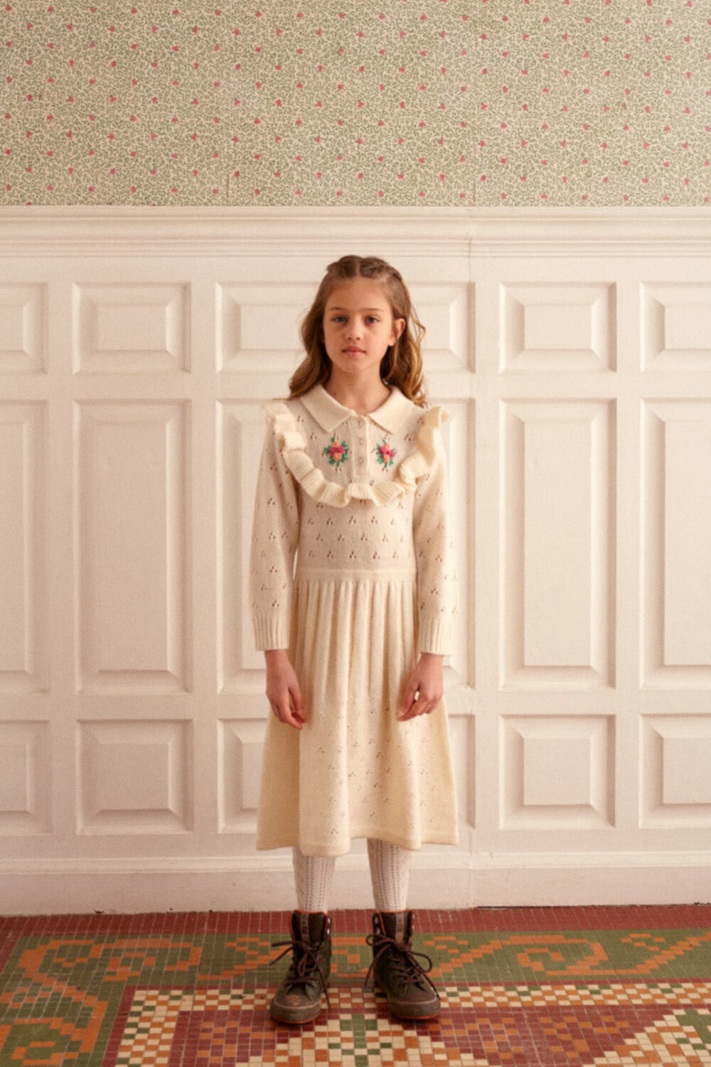 RUFFLES KNITTED DRESS_Ecru_ FISH & KIDS