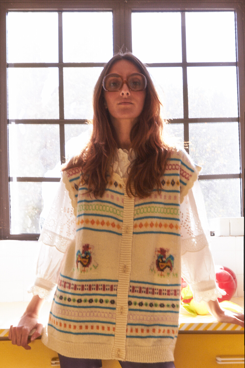 CHICKEN KNITTED GILET_Ecru_ FISH & KIDS