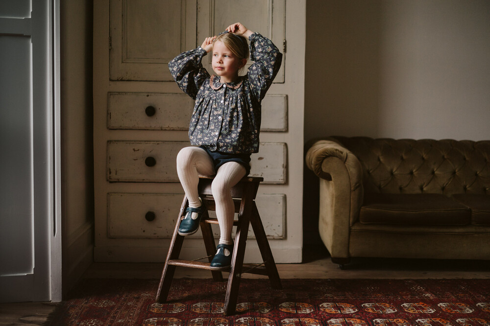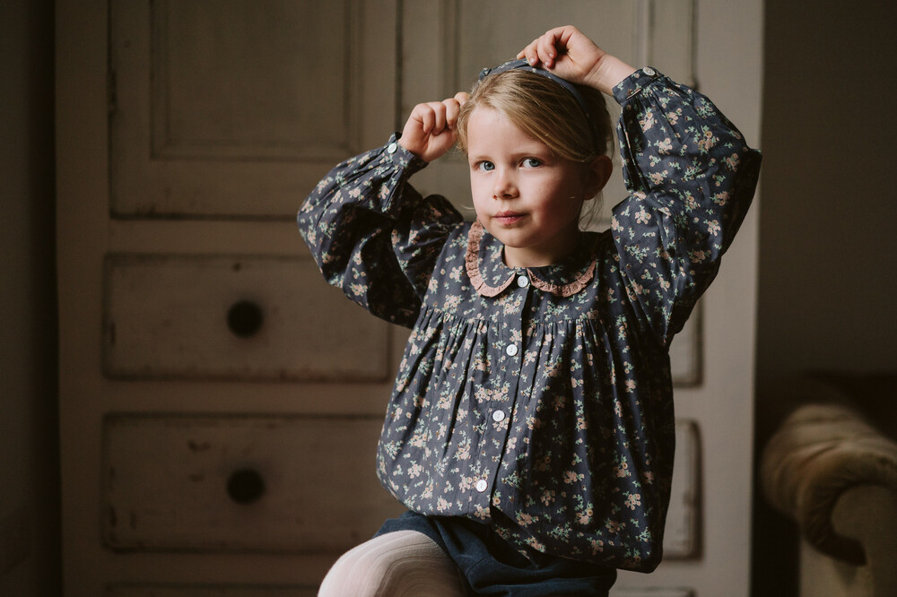 Eleanor Blouse winter blue floral_Little Cotton Clothes