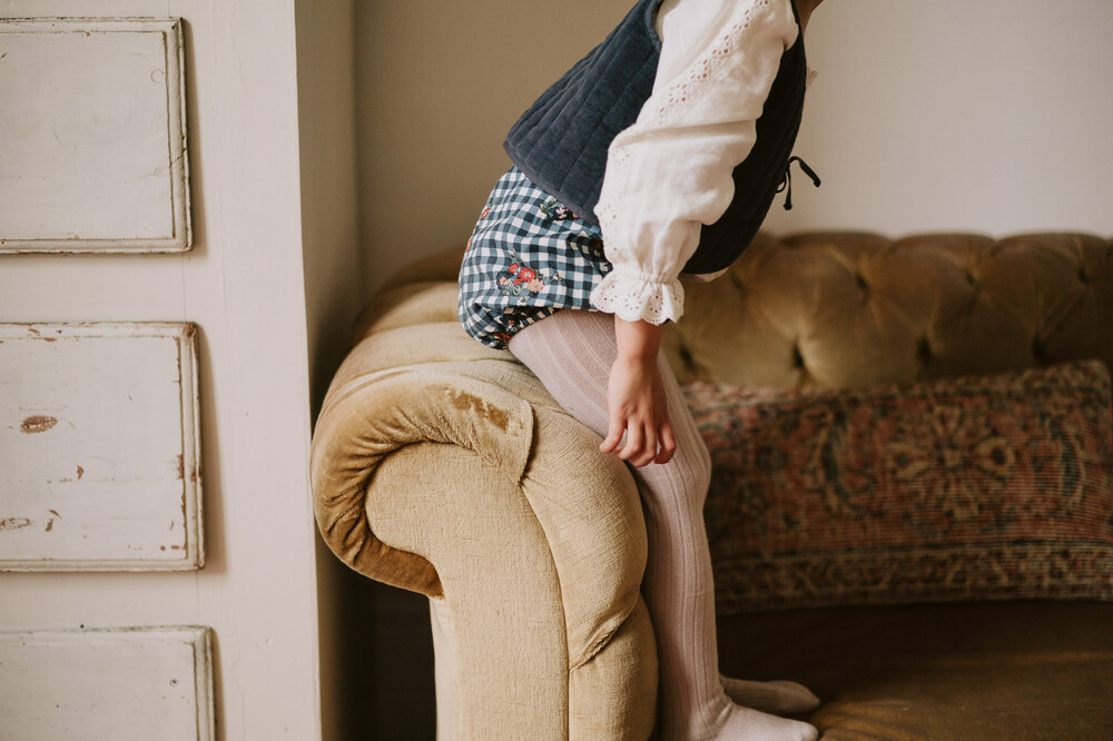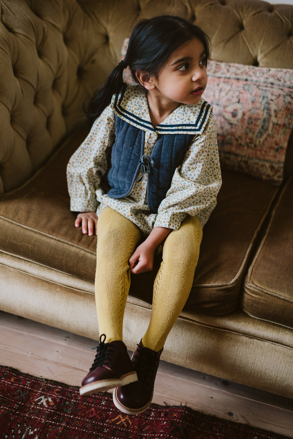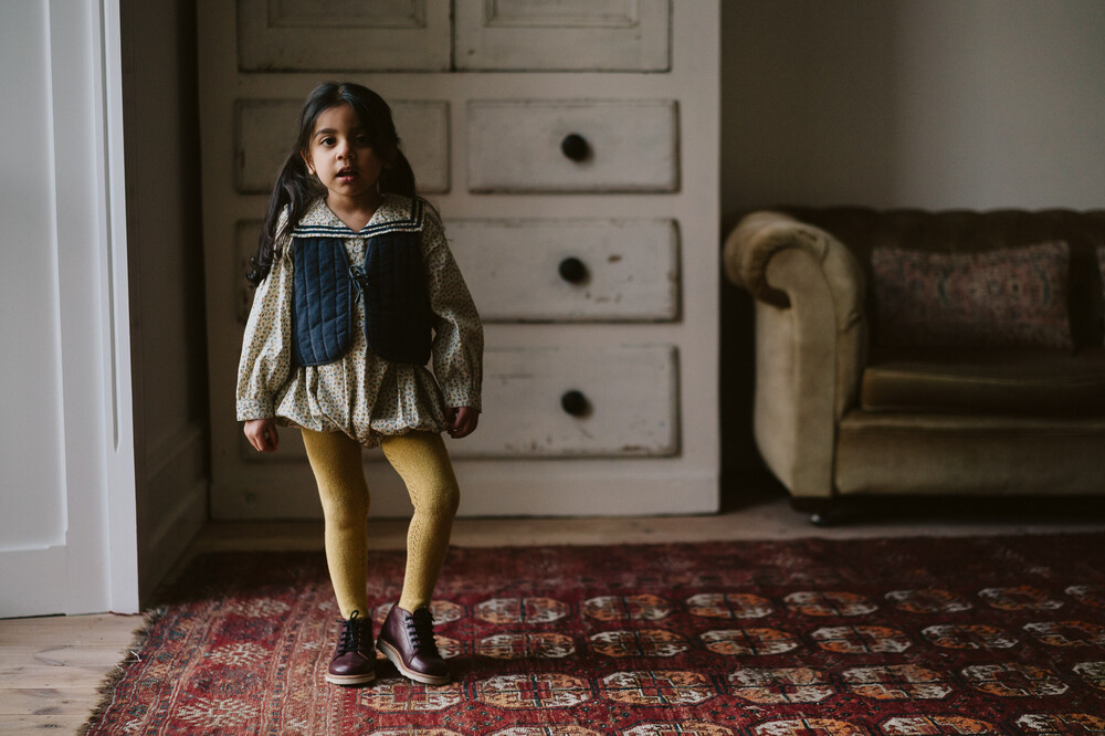 Bay quilted waistcoat winter blue velvet_Little Cotton Clothes