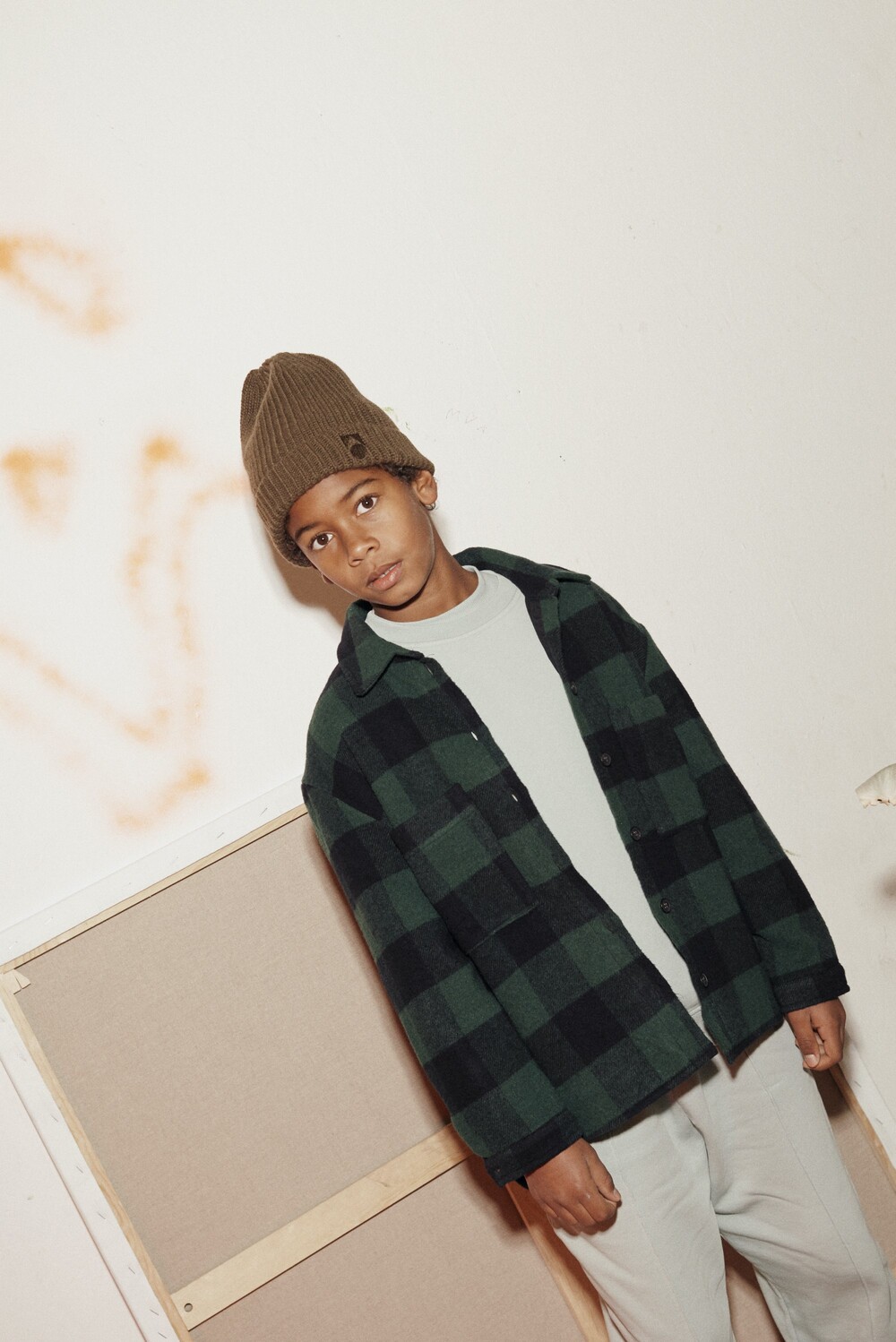 Embroidered logo detail.Fold-over panel and chunky ribbed detailing.