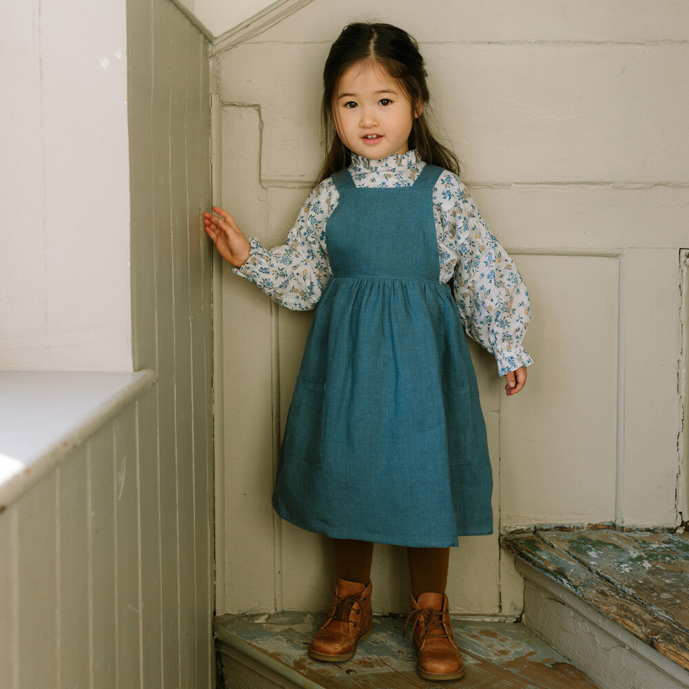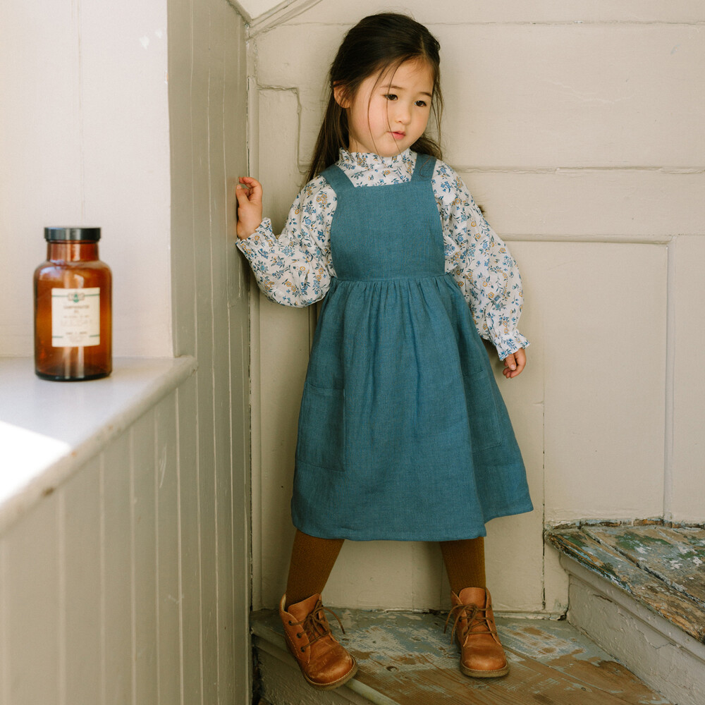 Conkers Pinafore - Cornflower Blue Linen_Nellie Quats