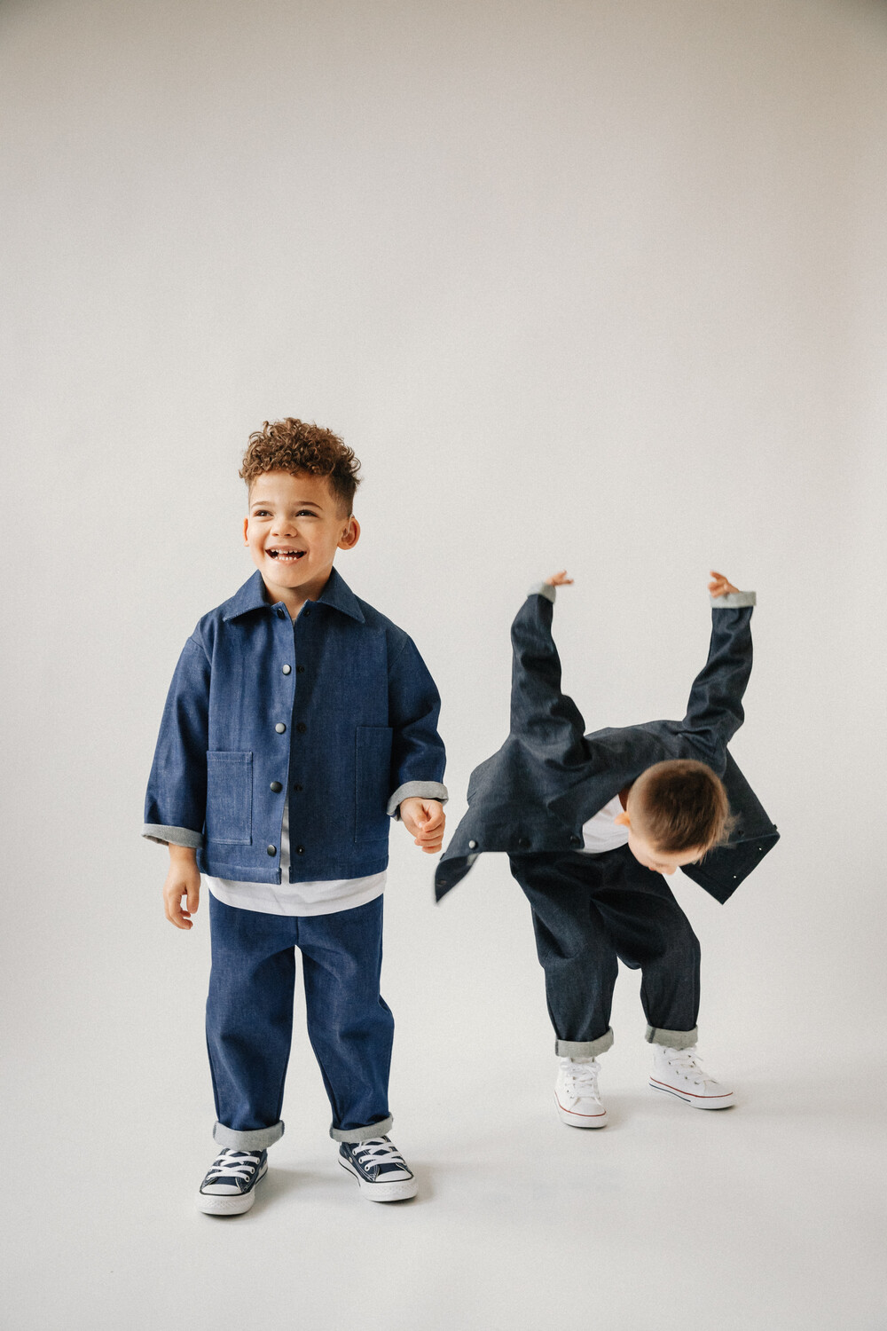 A classic staple design for kids. Our unisex denim jacket in indigo is a classic chore style jacket cut from 100% organic cotton denim from Italian mill Candiani Denim. The denim is made using clean technologies to save water, energy and replace harmful chemicals.