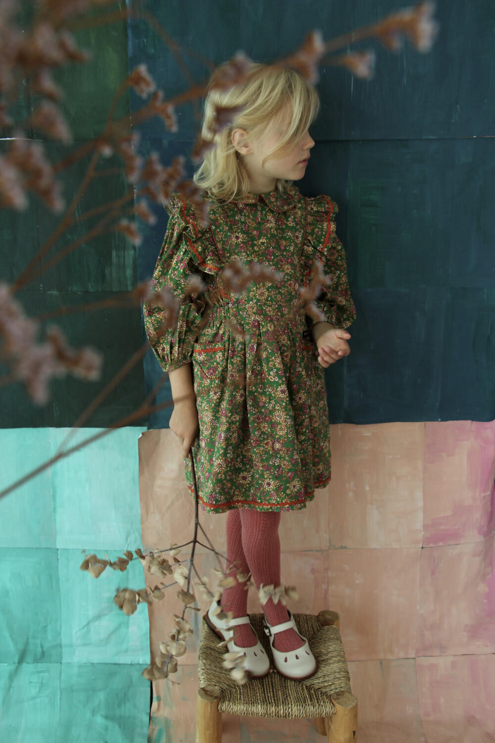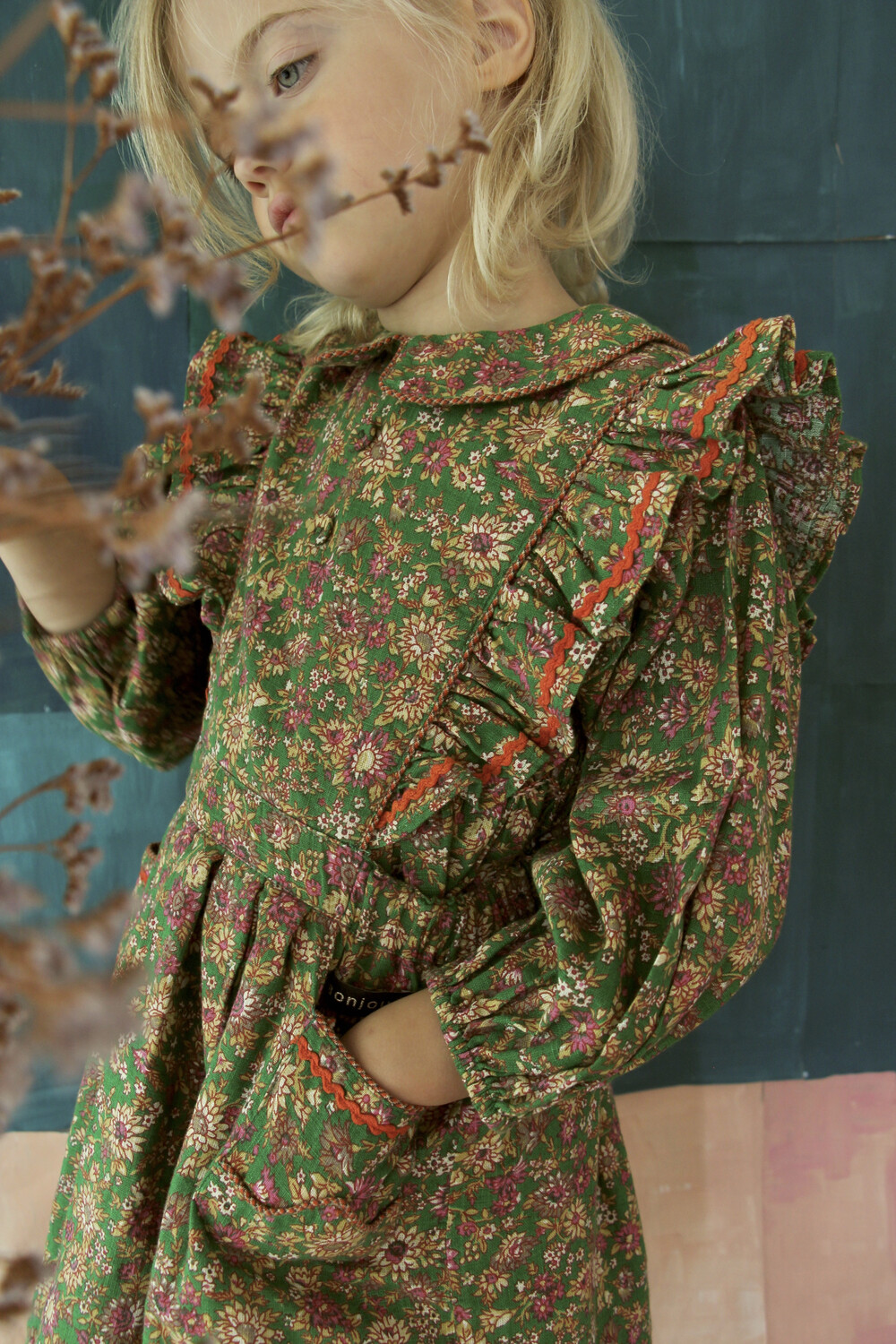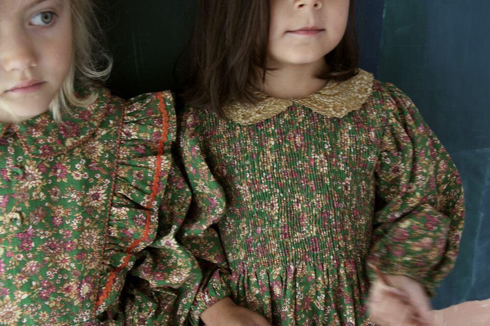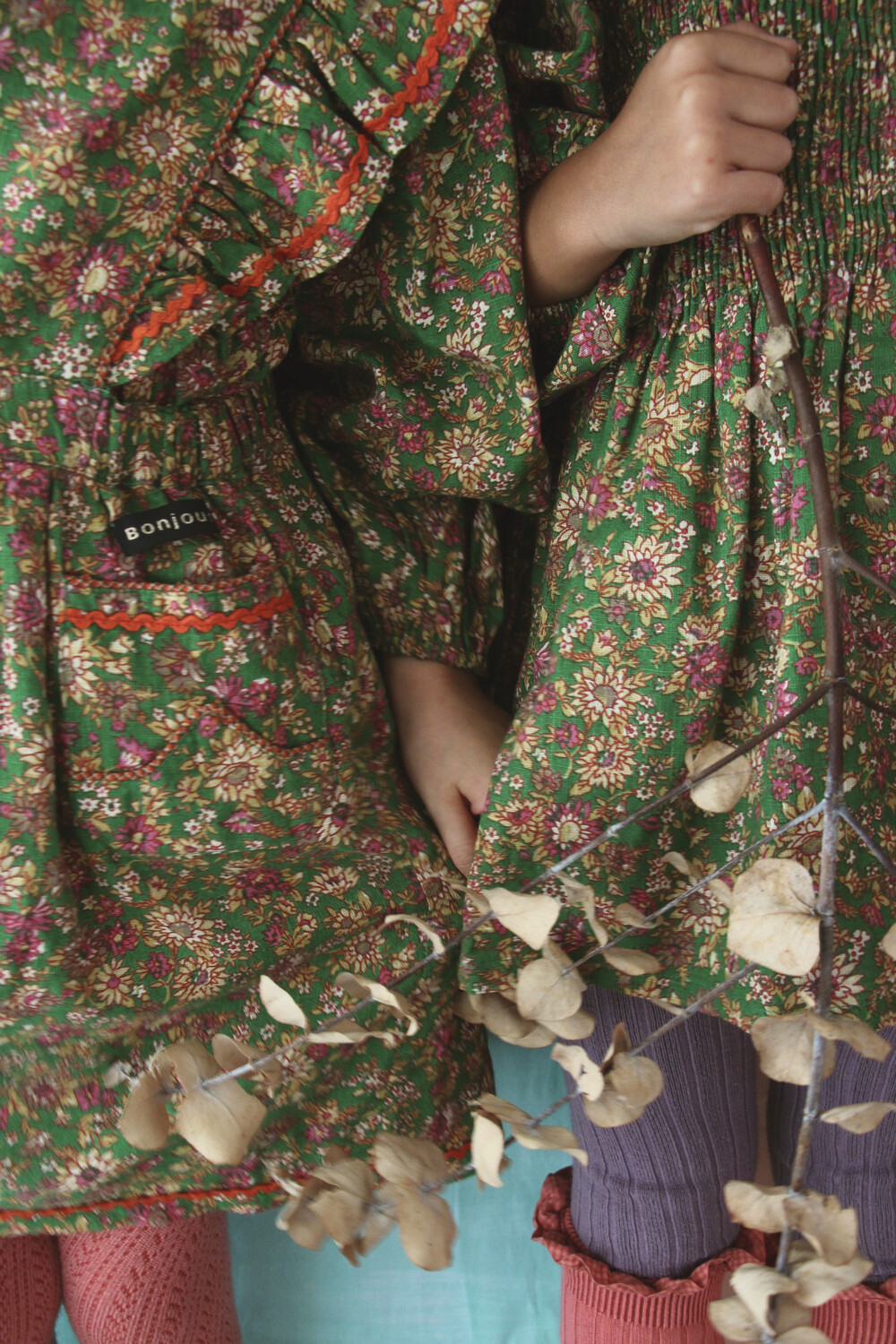 Apron dress with lace_Small pink flowers_Bonjour
