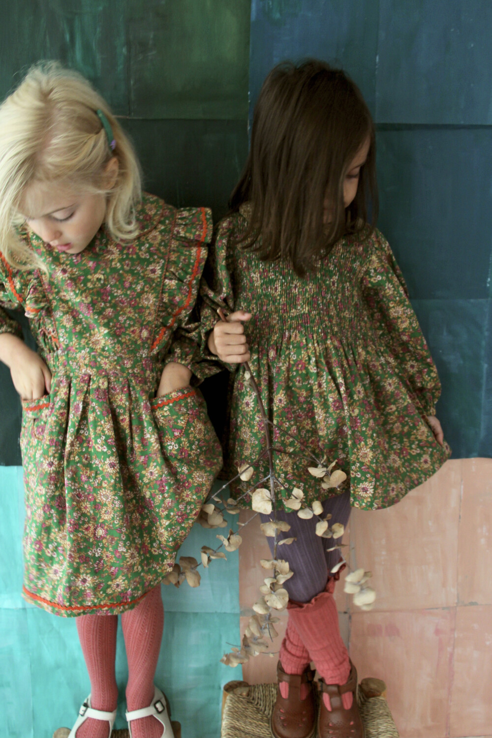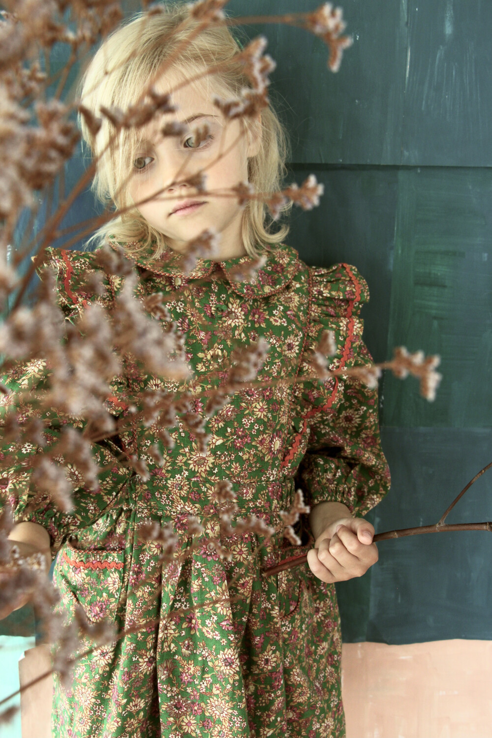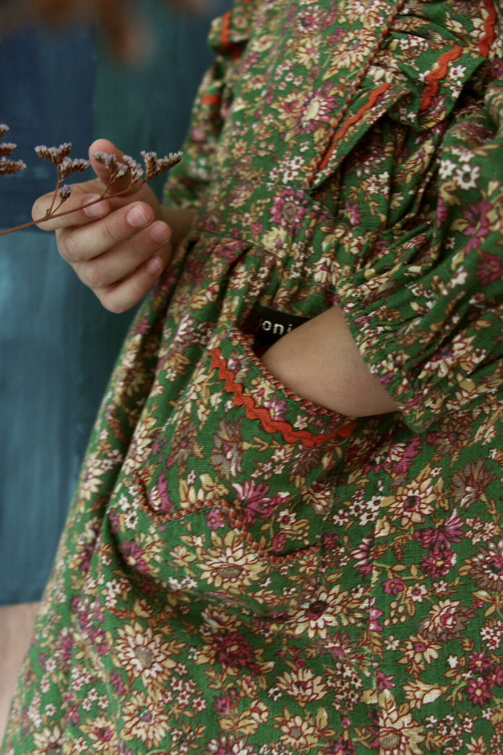 Apron dress with lace_Small pink flowers_Bonjour