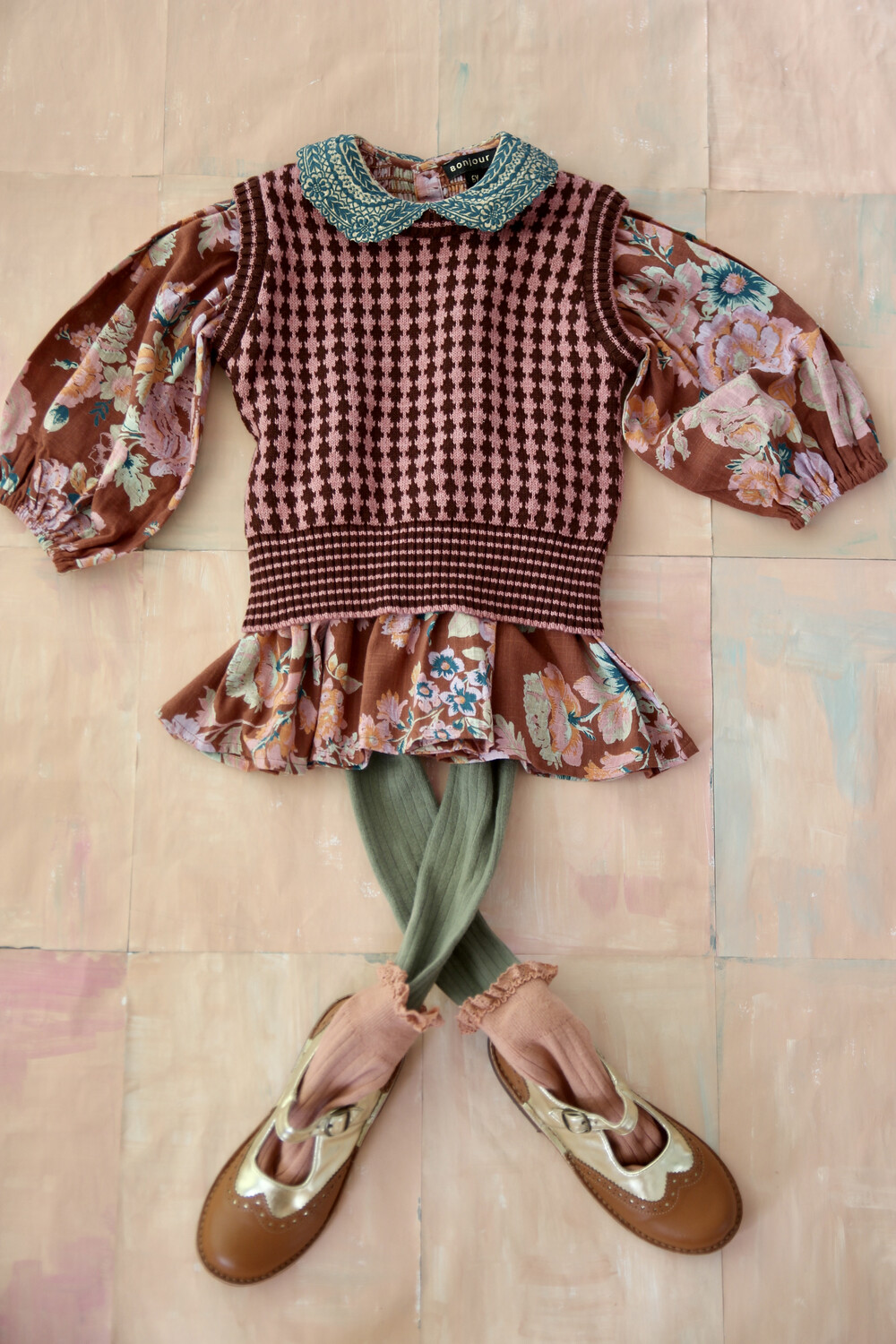 Blouse with embroidery collar_Big brown flower_Bonjour